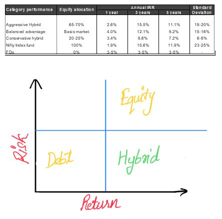 E. Historical performance of Hybrid funds (Vs. Market) (Refer to table below)